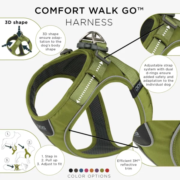 Dog Copenhagen Comfort Walk Go er eitt af fáum step-in beislum sem halda Y-lögun og heftir þar af leiðandi ekki hreyfingar hundsins og verndar háls og hrygg.